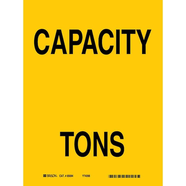 Capacity Sign, Sign Subject Matter Load Limit, Height 10 In., Width 7 In., Sign Material Aluminum, Sign Mounting Style With Mounting Holes, Header No Header, Legend Capacity Tons, Printed Language English, Sign Shape Rectangle