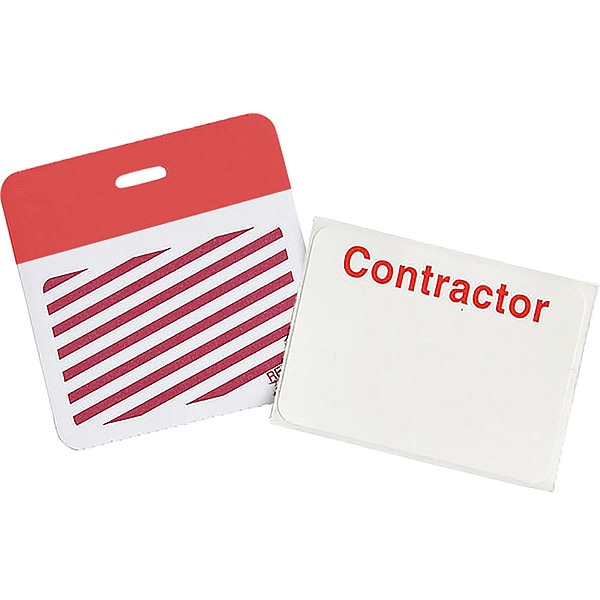 Color Card Clip On Badge, 1 Day, Material Paper, Color Red on White, Length 3 In, Width 3 In, Expiry Time 24 Hours, Legend Contractor, Includes 500 Front and Back Badge Parts, Package Quantity 500