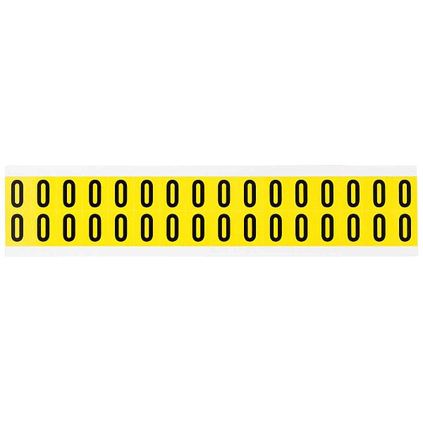 Number Label, Adhesive Type Removable and Repositionable Adhesive, Application General Identification, Wire and Cable Labeling, APWA Compliant Color No, Background Color Yellow, Character Color Black, Character Color Gradient Solid Color, Character Height 5/8 in, Character Outline Color Not Applicable, Character Type Numbers, Characters Included 0, Die Cut Yes, Embossed No, Font Gothic, Includes (32) Labels, Indoor/Outdoor Usage Indoor Only, Letter Casing Uppercase, Material Vinyl Cloth