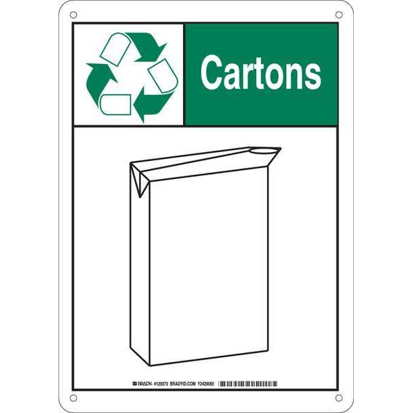 Facility Sign, Sign Subject Matter Recycling, Height 14 In., Width 10 In., Sign Material Plastic, Sign Mounting Style With Mounting Holes, Header Cartons, Legend No Legend, Printed Language English, Sign Shape Rectangle