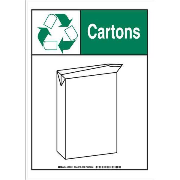 Facility Sign, Sign Subject Matter Recycling, Height 10 In., Width 7 In., Sign Material Polyester, Sign Mounting Style Adhesive Surface, Header Cartons, Legend No Legend, Printed Language English, Sign Shape Rectangle