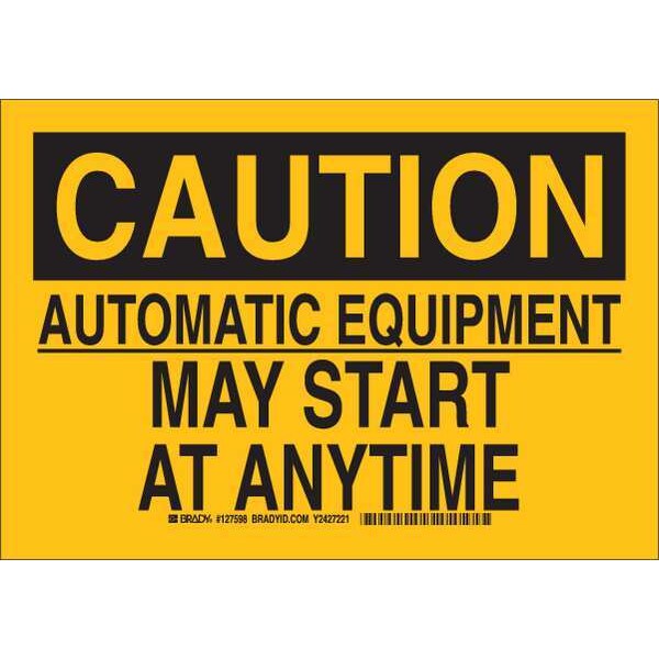 Caution Sign, Sign Subject Matter Machine and Operational, Height 10 In., Width 14 In., Sign Material Polyester, Header Caution, Legend Automatic Equipment May Start At Anytime, Printed Language English, Sign Shape Rectangle