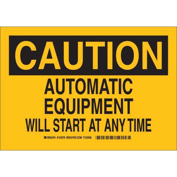 Caution Sign, Sign Subject Matter Machine and Operational, Height 7 In., Width 10 In., Sign Material Polyester, Header Caution, Legend Automatic Equipment Will Start At Any Time, Printed Language English, Sign Shape Rectangle