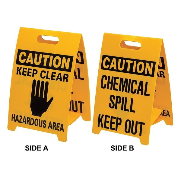 Floor Sign, Sign Subject Matter Spill Control, Height 20 In., Width 12 In., Sign Material Plastic, Header Caution, Legend Chemical Spill Keep Out, Printed Language English, Sign Shape Rectangle