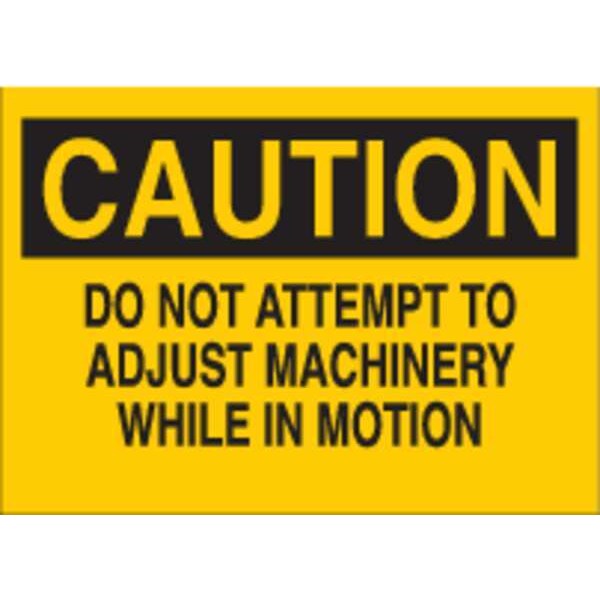 Caution Sign, Sign Subject Matter Machine and Operational, Height 7 In., Width 10 In., Sign Material Polyester, Header Caution, Legend Do Not Attempt To Adjust Machinery While In Motion, Printed Language English, Sign Shape Rectangle