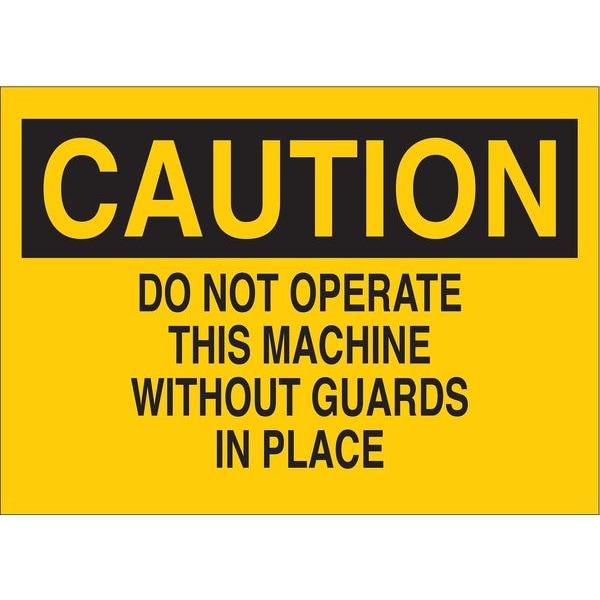 Caution Sign, Sign Subject Matter Machine Guarding, Height 10 In., Width 14 In., Sign Material Polyester, Header Caution, Legend Do Not Operate This Machine Without Guards In Place, Printed Language English, Sign Shape Rectangle