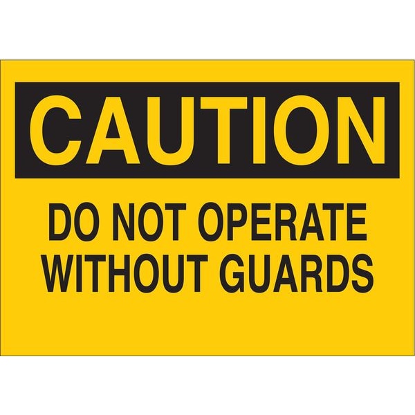 Caution Sign, Sign Subject Matter Machine Guarding, Height 7 In., Width 10 In., Sign Material Aluminum, Header Caution, Legend Do Not Operate Without Guards, Printed Language English, Sign Shape Rectangle