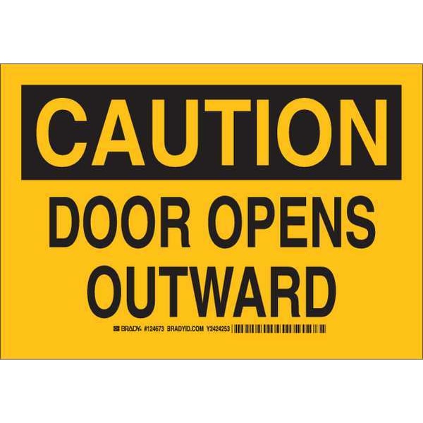 Caution, Door Opens Outward, 10" W x 7" H, Rectangle, Plastic, 124672