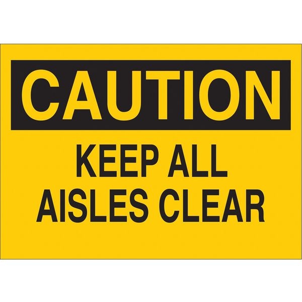 Caution Sign, Sign Subject Matter Keep Clear, Height 7 In., Width 10 In., Sign Material Plastic, Header Caution, Legend Keep All Aisles Clear, Printed Language English, Sign Shape Rectangle