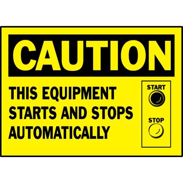 Caution Label, Horizontal Rectangle, Number of Printed Sides 1, English, Sign Legend This Equipment Starts And Stops Automatically, Sign Legend Style Text, Package Quantity 5