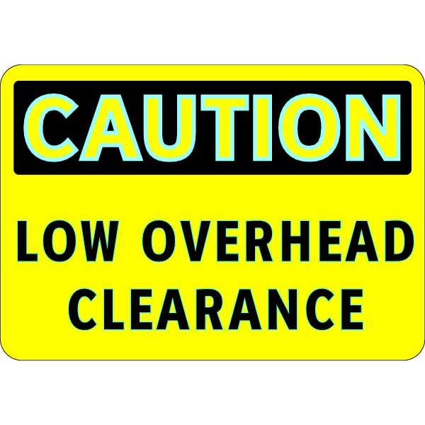 Caution Sign, Sign Subject Matter Overhead Clearance, Height 7 In., Width 10 In., Sign Material Aluminum, Header Caution, Legend Low Overhead Clearance, Printed Language English, Sign Shape Rectangle