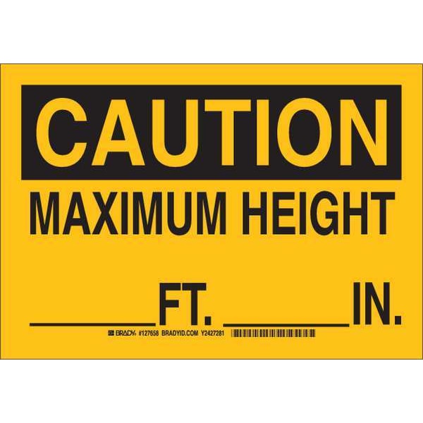 Caution, Maximum Height _Ft. _In., 10" W x 7" H, Rectangle, Plastic, 127657