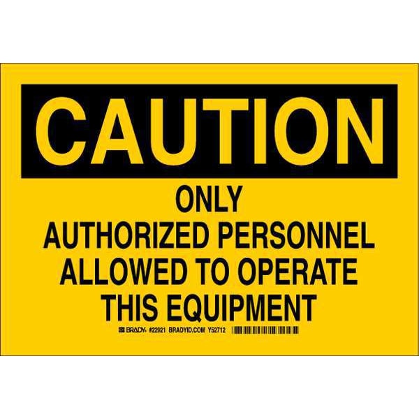 Caution Sign, Sign Subject Matter Machine and Operational, Height 10 In., Width 14 In., Sign Material Aluminum, Header Caution, Legend Only Authorized Personnel Allowed To Operate This Equipment, Printed Language English, Sign Shape Rectangle