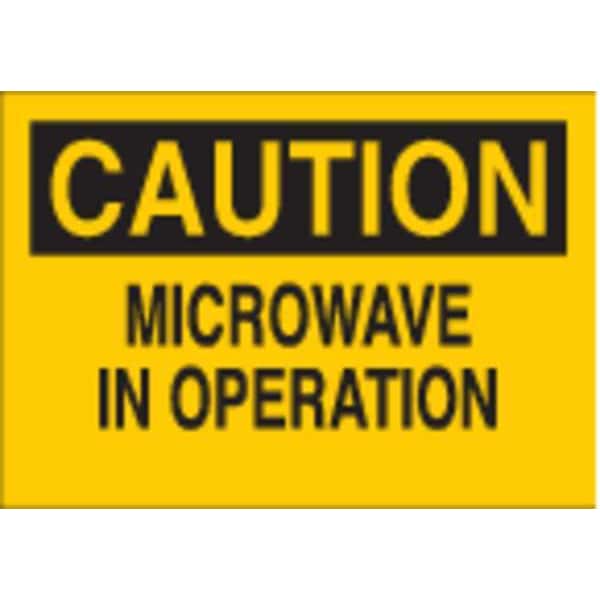 Caution Radiation Sign, Sign Subject Matter Health Hazard, Height 10 in, Width 14 in, Sign Material Polyester, Sign Mounting Style Adhesive Surface, Header Caution, Legend Microwave In Operation, Printed Language English, Sign Shape Rectangle