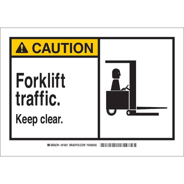 Caution Sign, Sign Subject Matter Lift Truck Traffic, Height 10 In., Width 14 In., Sign Material Aluminum, Header Caution, Legend Forklift Traffic. Keep Clear., Printed Language English, Sign Shape Rectangle