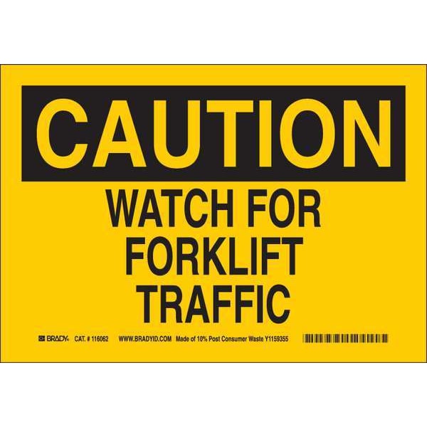 Caution Sign, Sign Subject Matter Lift Truck Traffic, Height 10 In., Width 14 In., Sign Material Plastic, Header Caution, Legend Watch For Forklift Traffic, Printed Language English, Sign Shape Rectangle