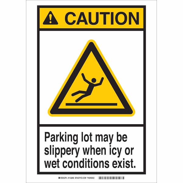 Caution Sign, Sign Subject Matter Accident Prevention, Height 10 In., Width 7 In., Sign Material Polyester, Header Caution, Legend Parking Lot May Be Slippery When Icy Or Wet Conditions Exist, Printed Language English, Sign Shape Rectangle