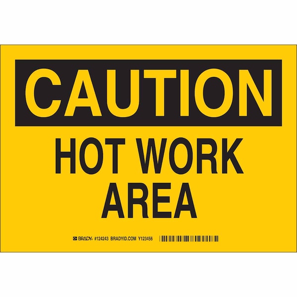 Caution Sign, Sign Subject Matter Hot, Height 10 in, Width 14 in, Sign Material Polyester, Header Caution, Legend Hot Work Area, Printed Language English, Sign Shape Rectangle