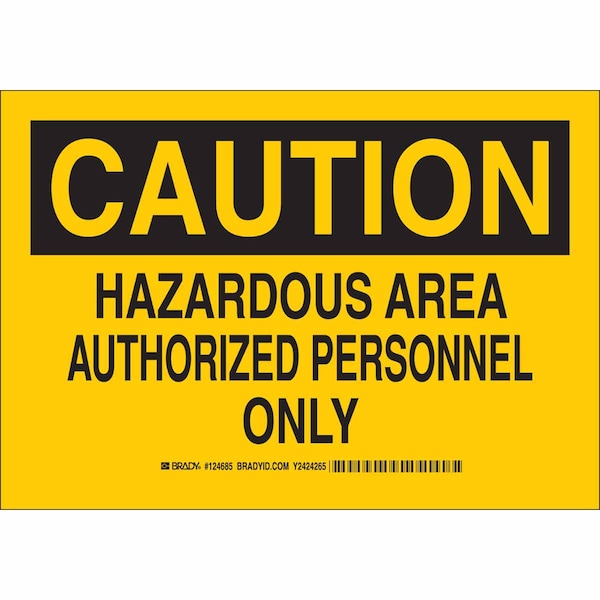 Caution Sign, Sign Subject Matter Chemical, Gas or Hazardous Materials, Height 10 in, Width 14 in, Sign Material Polyester, Header Caution, Legend Hazardous Area Authorized Personnel Only, Printed Language English, Sign Shape Rectangle