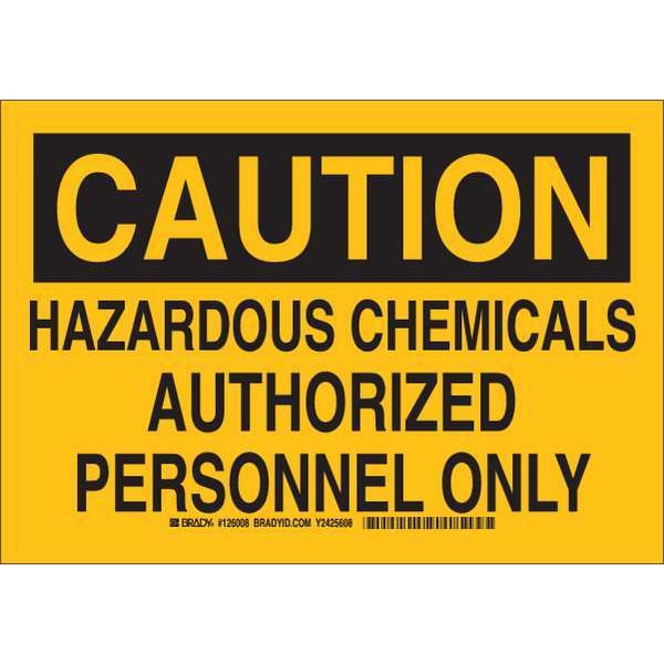 Caution Sign, Sign Subject Matter Chemical, Gas or Hazardous Materials, Height 10 in, Width 14 in, Sign Material Polyester, Header Caution, Legend Hazardous Chemicals Authorized Personnel Only, Printed Language English, Sign Shape Rectangle