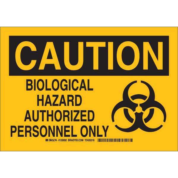 Caution Sign, Sign Subject Matter Chemical, Gas or Hazardous Materials, Height 10 in, Width 14 in, Sign Material Polyester, Header Caution, Legend Biological Hazard Authorized Personnel Only, Printed Language English, Sign Shape Rectangle