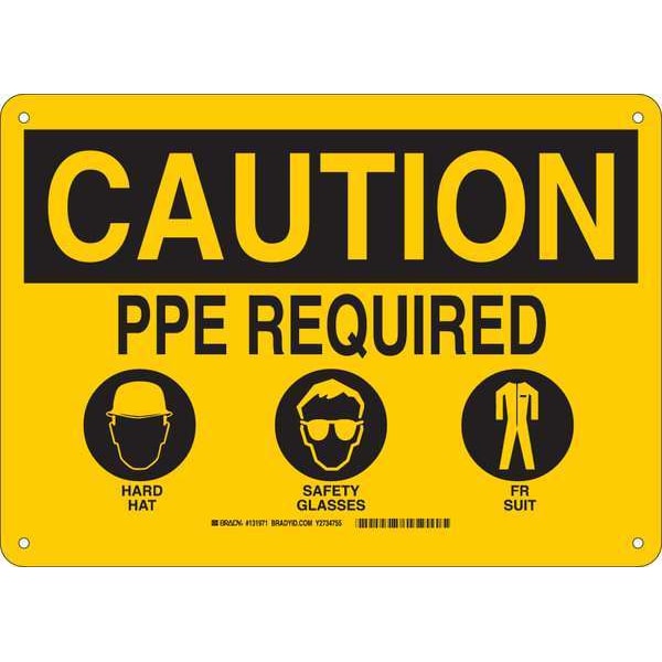 Caution Sign, Sign Subject Matter Personal Protection, Height 10 in, Width 14 in, Sign Material Aluminum, Header Caution, Legend PPE Required Hard Hat Safety Glasses FR Suit, Printed Language English, Sign Shape Rectangle