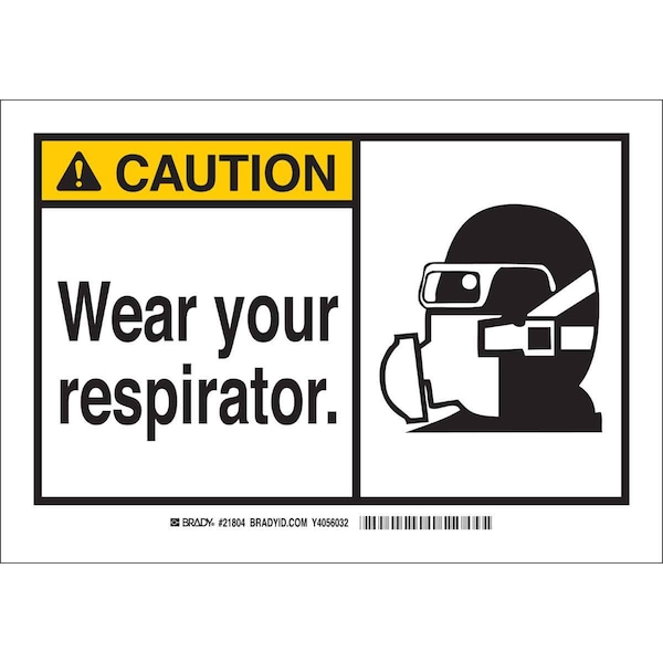 Caution Sign, Sign Subject Matter Personal Protection, Height 10 in, Width 14 in, Sign Material Fiberglass, Header Caution, Legend Wear Your Respirator, Printed Language English, Sign Shape Rectangle