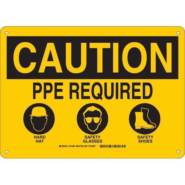 Caution Sign, Sign Subject Matter Personal Protection, Height 10 in, Width 14 in, Sign Material Plastic, Header Caution, Legend PPE Required Hard Hat Safety Glasses Safety Shoes, Printed Language English, Sign Shape Rectangle