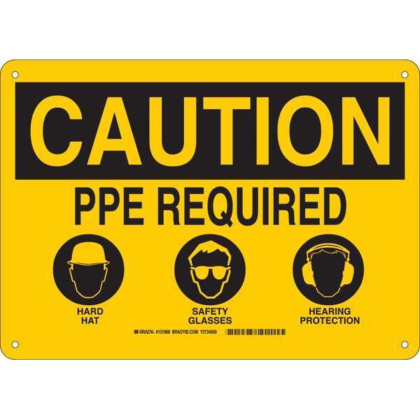 Caution Sign, Sign Subject Matter Personal Protection, Height 10 in, Width 14 in, Sign Material Plastic, Header Caution, Legend PPE Required Hard Hat Safety Glasses Hearing Protection, Printed Language English, Sign Shape Rectangle