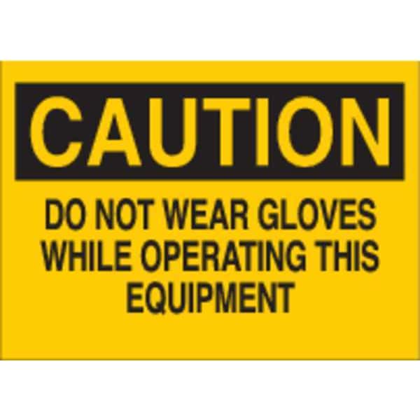 Caution Sign, Sign Subject Matter Personal Protection, Height 10 in, Width 14 in, Sign Material Plastic, Header Caution, Legend Do Not Wear Gloves While Operating This Equipment, Printed Language English, Sign Shape Rectangle