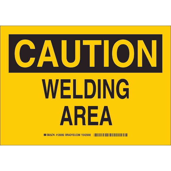 Caution Sign, Sign Subject Matter Welding Hazard, Height 10 in, Width 14 in, Sign Material Polyester, Header Caution, Legend Welding Area, Printed Language English, Sign Shape Rectangle