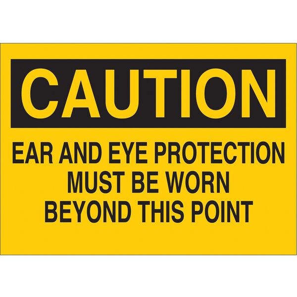 Caution Sign, Sign Subject Matter Personal Protection, Height 10 in, Width 14 in, Sign Material Polyester, Header Caution, Legend Ear And Eye Protection Must Be Worn Beyond This Point, Printed Language English, Sign Shape Rectangle