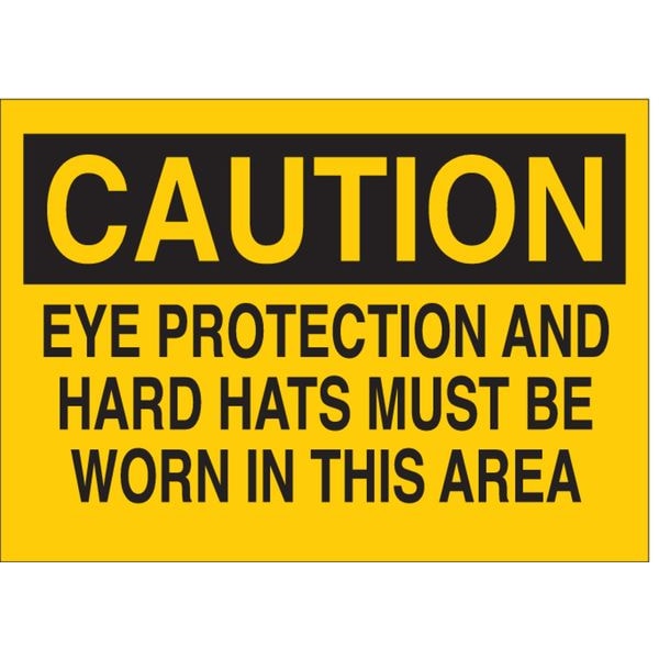 Caution Sign, Sign Subject Matter Personal Protection, Height 10 in, Width 14 in, Sign Material Polyester, Header Caution, Legend Eye Protection And Hard Hats Must Be Worn In This Area, Printed Language English, Sign Shape Rectangle