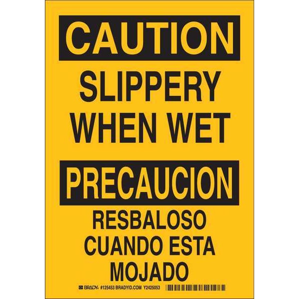 Caution Sign, Sign Subject Matter Accident Prevention, Height 14 In., Width 10 In., Sign Material Polyester, Header Caution/Precaucion, Legend Slippery When Wet/Resbaloso Cuando Esta Mojado, Printed Language English, Spanish, Sign Shape Rectangle