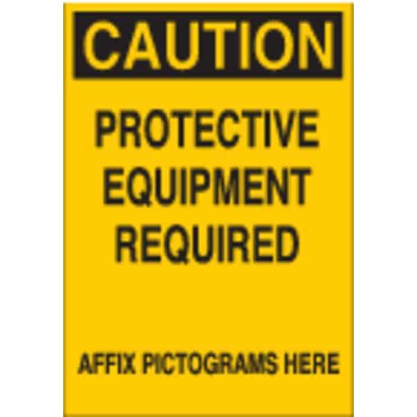 Caution Sign, Sign Subject Matter Personal Protection, Height 14 in, Width 10 in, Sign Material Plastic, Header Caution, Legend Protective Equipment Required Affix Pictograms Here, Printed Language English, Sign Shape Rectangle