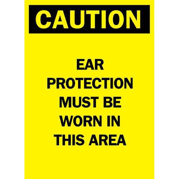 Caution Sign, Sign Subject Matter Personal Protection, Height 14 in, Width 10 in, Sign Material Polyester, Header Caution, Legend Ear Protection Must Be Worn In This Area, Printed Language English, Sign Shape Rectangle