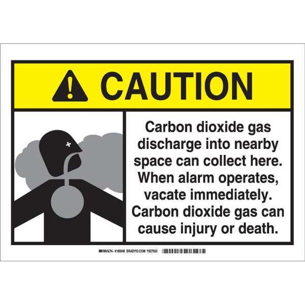 Caution Sign, Sign Subject Matter Chemical, Gas or Hazardous Materials, Height 3 1/2 in, Width 5 in, Sign Material Polyester, Header Caution, Legend Carbon Dioxide Gas Discharge Into Nearby Space Can Collect Here. When Alarm Operates, Vacate Immediately. Carbon Dioxide Gas Can Cause Injury Or Death., Printed Language English, Sign Shape Rectangle