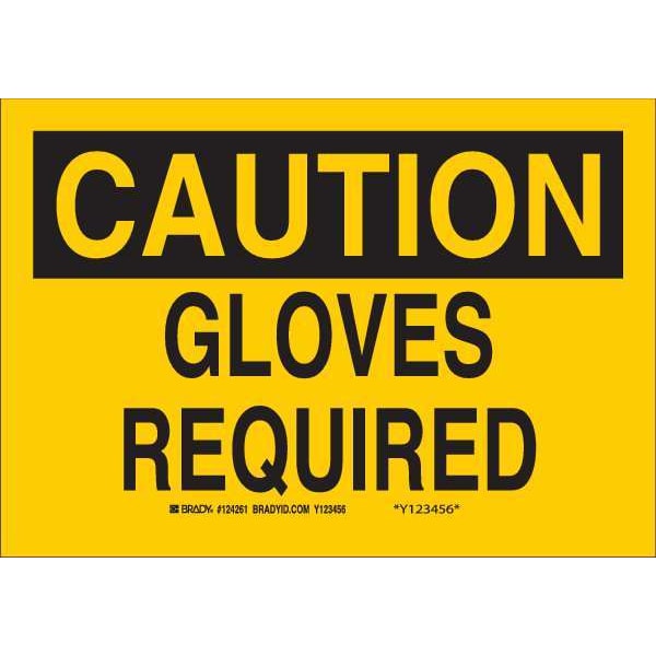 Caution Sign, Sign Subject Matter Personal Protection, Height 3 1/2 in, Width 5 in, Sign Material Polyester, Header Caution, Legend Gloves Required, Printed Language English, Sign Shape Rectangle