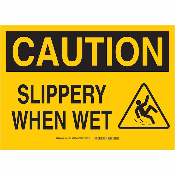 Caution Sign, Sign Subject Matter Accident Prevention, Height 7 In., Width 10 In., Sign Material Plastic, Header Caution, Legend Slippery When Wet, Printed Language English, Sign Shape Rectangle