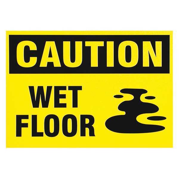 Caution Sign, Sign Subject Matter Accident Prevention, Height 7 In., Width 10 In., Sign Material Vinyl, Header Caution, Legend Wet Floor, Printed Language English, Sign Shape Rectangle