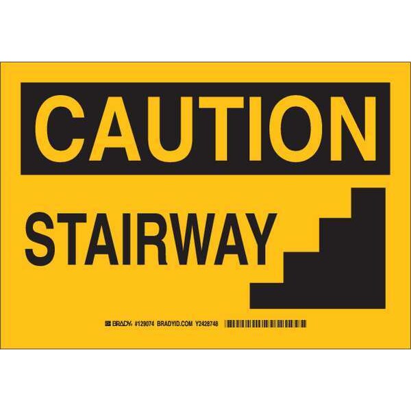 Caution Sign, Sign Subject Matter Exit and Entrance, Height 7 In., Width 10 In., Sign Material Aluminum, Header Caution, Legend Stairway, Printed Language English, Sign Shape Rectangle