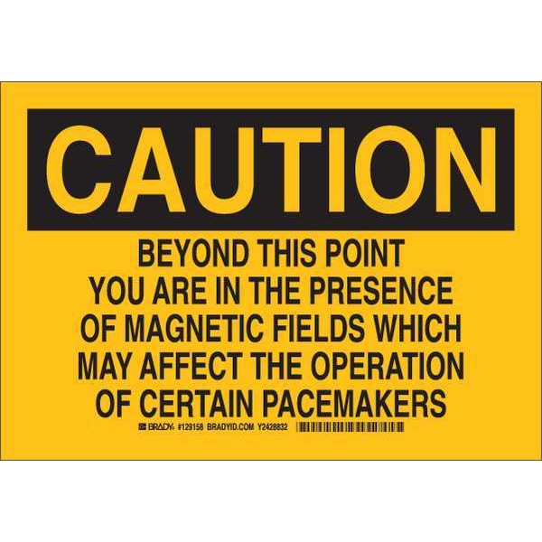 Caution Sign, Sign Subject Matter Health Hazard, Height 7 in, Width 10 in, Sign Material Polyester, Header Caution, Legend Beyond This Point You Are In The Presence Of Magnetic Fields Which May Affect The Operation Of Certain Pacemakers, Printed Language English, Sign Shape Rectangle