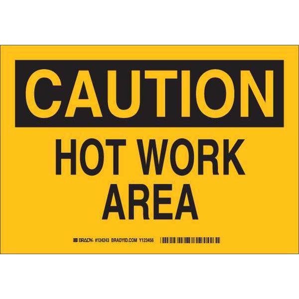 Caution Sign, Sign Subject Matter Hot, Height 7 in, Width 10 in, Sign Material Polyester, Header Caution, Legend Hot Work Area, Printed Language English, Sign Shape Rectangle