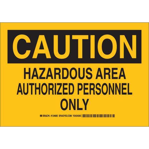 Caution Sign, Sign Subject Matter Chemical, Gas or Hazardous Materials, Height 7 in, Width 10 in, Sign Material Polyester, Header Caution, Legend Hazardous Area Authorized Personnel Only, Printed Language English, Sign Shape Rectangle