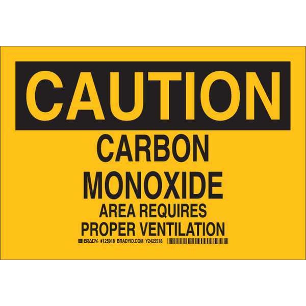 Caution Sign, Sign Subject Matter Chemical, Gas or Hazardous Materials, Height 7 in, Width 10 in, Sign Material Polyester, Header Caution, Legend Carbon Monoxide Area Requires Proper Ventilation, Printed Language English, Sign Shape Rectangle