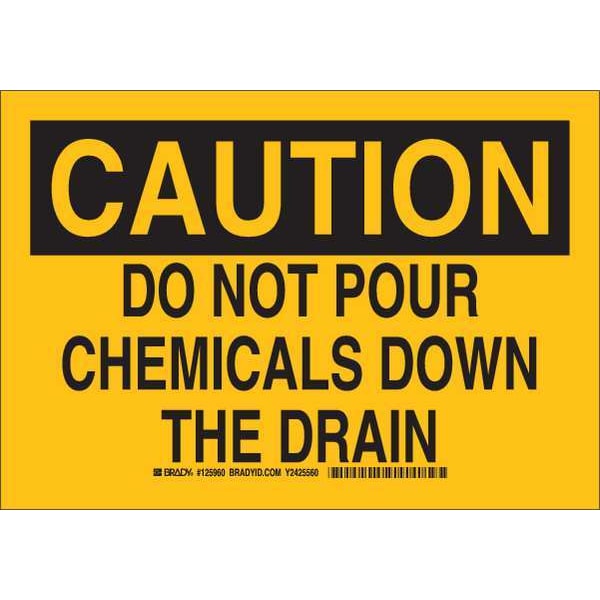 Caution Sign, Sign Subject Matter Chemical, Gas or Hazardous Materials, Height 7 in, Width 10 in, Sign Material Polyester, Header Caution, Legend Do Not Pour Chemicals Down The Drain, Printed Language English, Sign Shape Rectangle