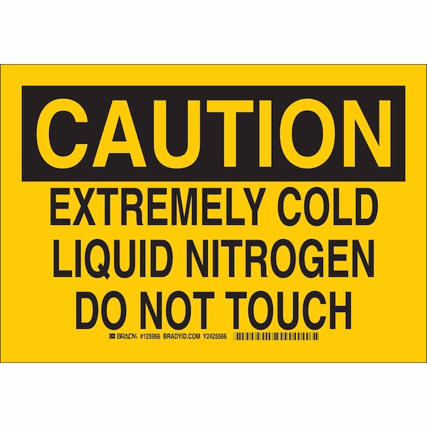 Caution Sign, Sign Subject Matter Chemical, Gas or Hazardous Materials, Height 7 in, Width 10 in, Sign Material Polyester, Header Caution, Legend Extremely Cold Liquid Nitrogen Do Not Touch, Printed Language English, Sign Shape Rectangle