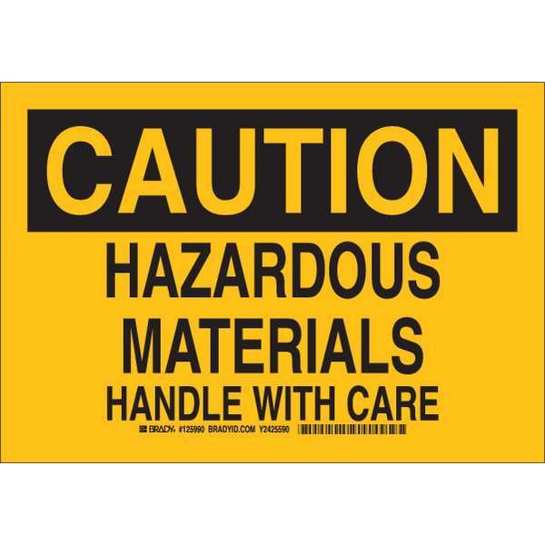 Caution Sign, Sign Subject Matter Chemical, Gas or Hazardous Materials, Height 7 in, Width 10 in, Sign Material Polyester, Header Caution, Legend Hazardous Materials Handle With Care, Printed Language English, Sign Shape Rectangle