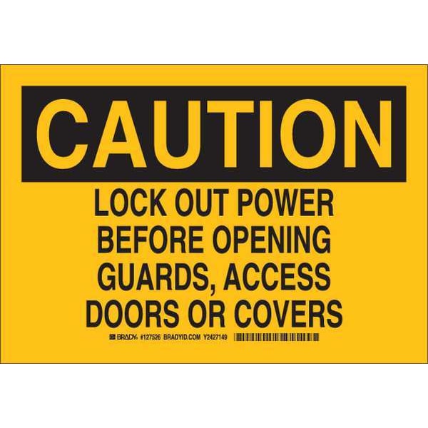 Caution Sign, Sign Subject Matter Lockout Tagout, Height 7 in, Width 10 in, Sign Material Polyester, Header Caution, Legend Lock Out Power Before Opening Guards, Access Doors Or Covers, Printed Language English, Sign Shape Rectangle