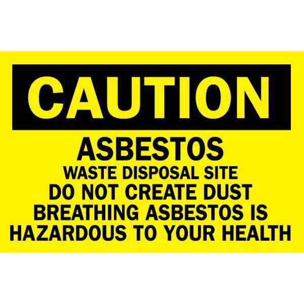 Caution Sign, Sign Subject Matter Health Hazard, Height 7 in, Width 10 in, Sign Material Polyester, Header Caution, Legend Asbestos Waste Disposal Site Do Not Create Dust Breathing Asbestos Is Hazardous To Your Health, Printed Language English, Sign Shape Rectangle